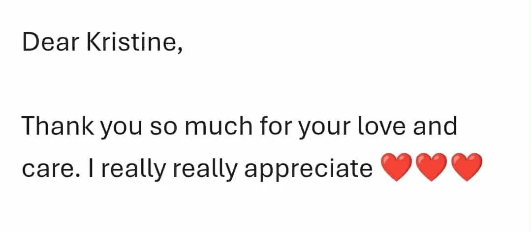 Kristine did a general reading for me only knowing my question. Not only did she identify some personal issues I was having preventing me from moving forward, she also gave me very detailed and practical advice about how to get from A to B, and some of it was almost verbatim from what I had personally received as guidance in my own meditation so I knew she was truly receiving the message from spirit. And all of her message was given in a loving and non-judmental format - I felt so inspired after receiving it. I will definitely be reaching out to Kristine again!